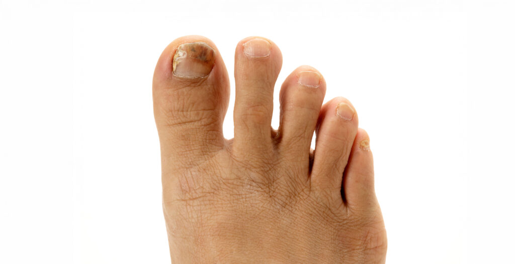 放置すると爪全体が変形し、歩行時に痛みを感じるようになることもあります。また、見た目では判断しにくい他の爪の病気(乾癬や爪の変形など)との見分けが必要なため、自己判断は禁物です。